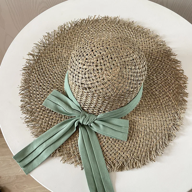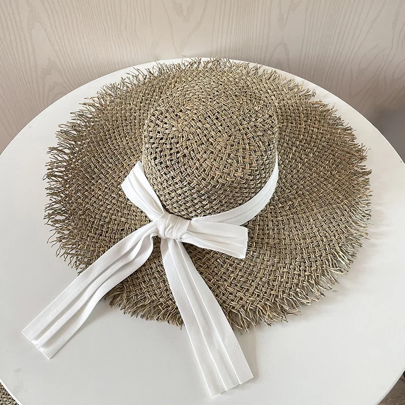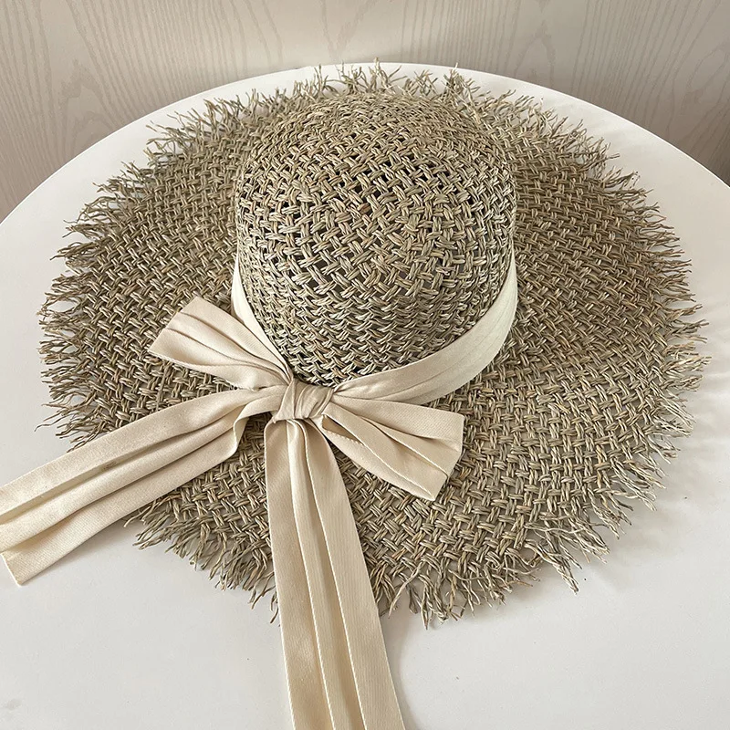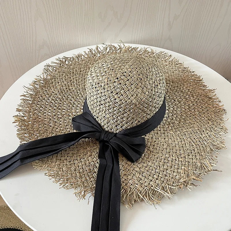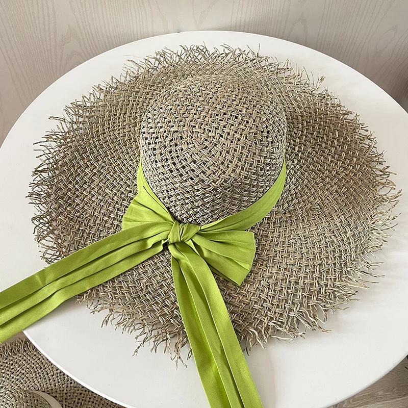 Big Brim Beach Hat For Women Summer Seaside Raffia Straw Hat Travel Vacation Visor Sun Hat Women's Hat With Colored Raw Edges