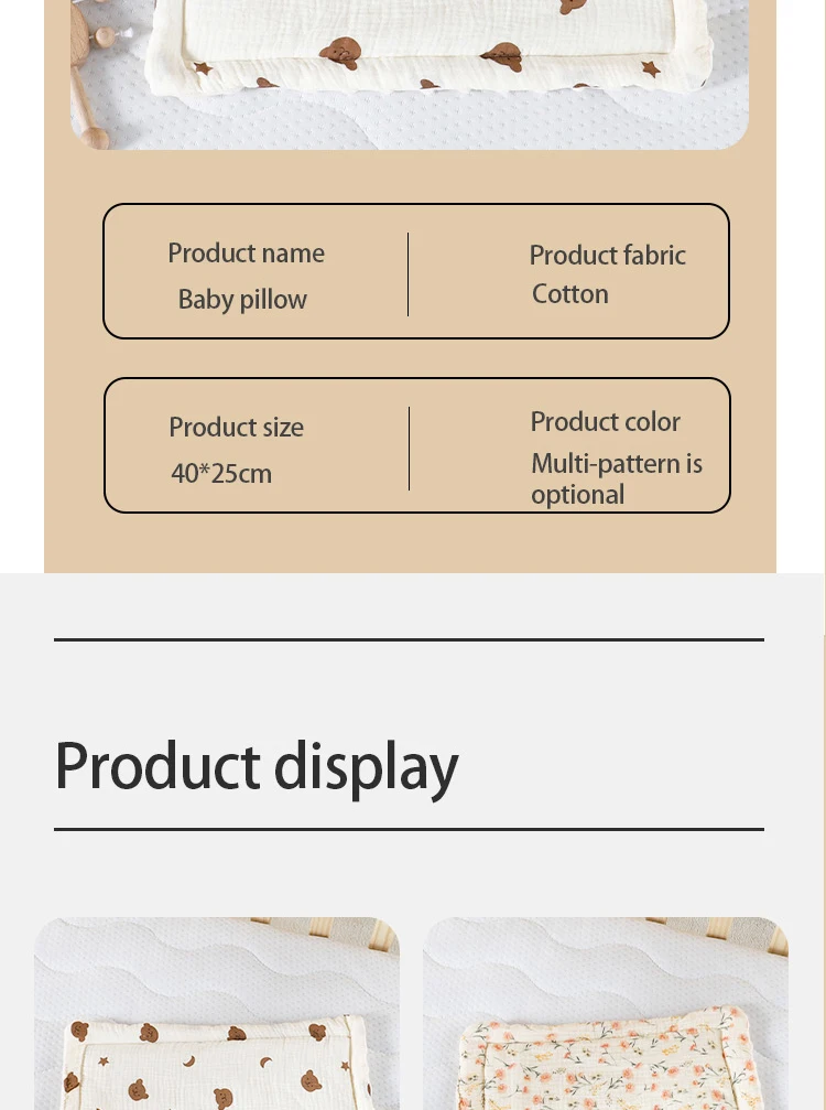 • 100% Cotton Material :Crafted from 100% pure cotton, this baby pillow offers a soft and comfortable touch, ensuring your baby's delicate skin is well protected.