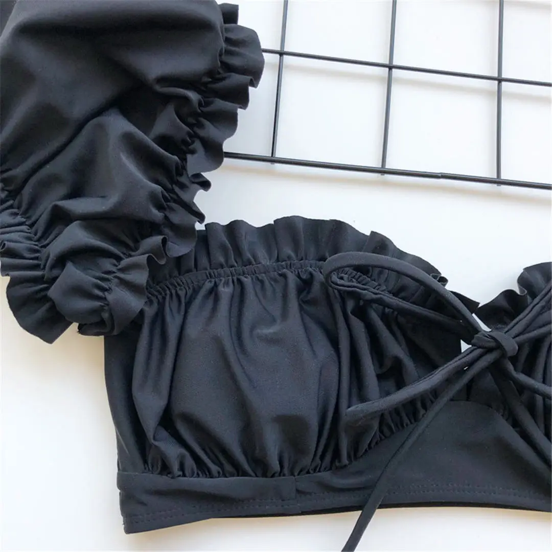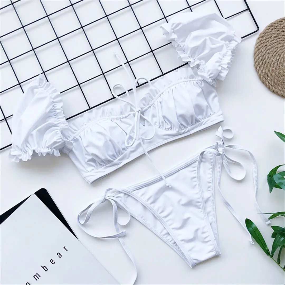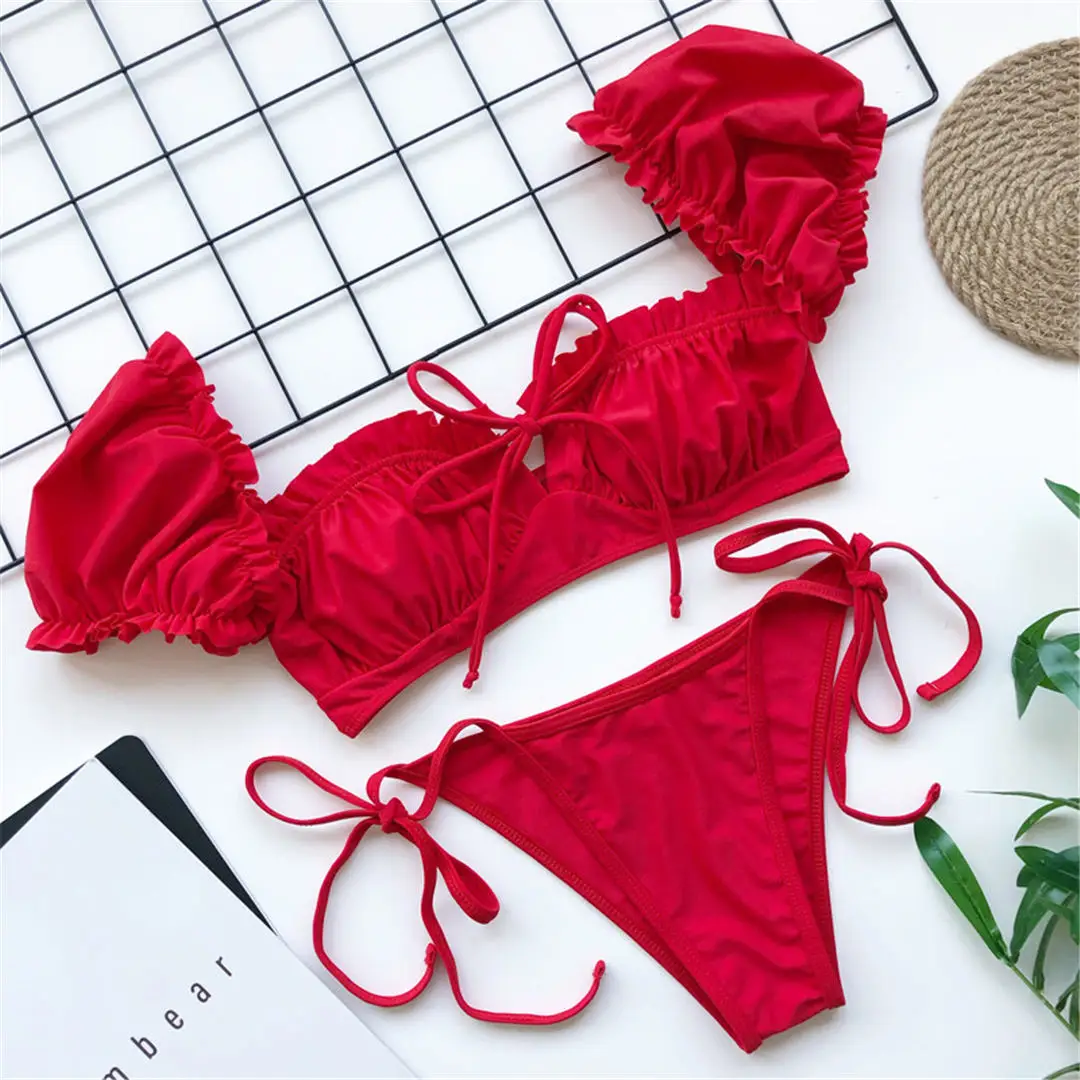 Short Sleeve Brazilian Pleated Ruched Bikini Swimsuit Female Women Swimwear Two-pieces Bikini set Bather Bathing Suit Swim V1729